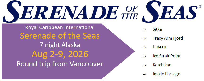 Join me for an Alaskan Cruise onboard the Serenade of the Seas, Aug 2-9, 2026